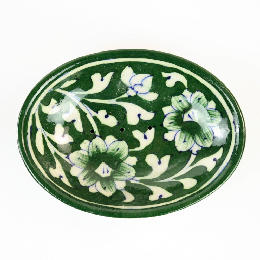 Seifenschale BLUME oval dunkelgrün, Blue Pottery, 13 x 9,5 x 3 cm