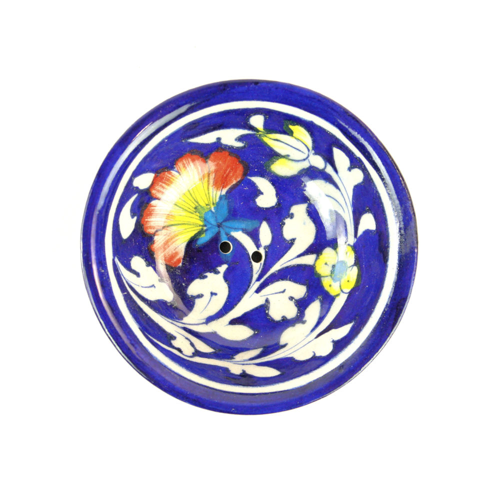 Seifenschale/Konjac-Ablage BLUME rund dunkelblau, Blue Pottery, 9,5 x 3 cm