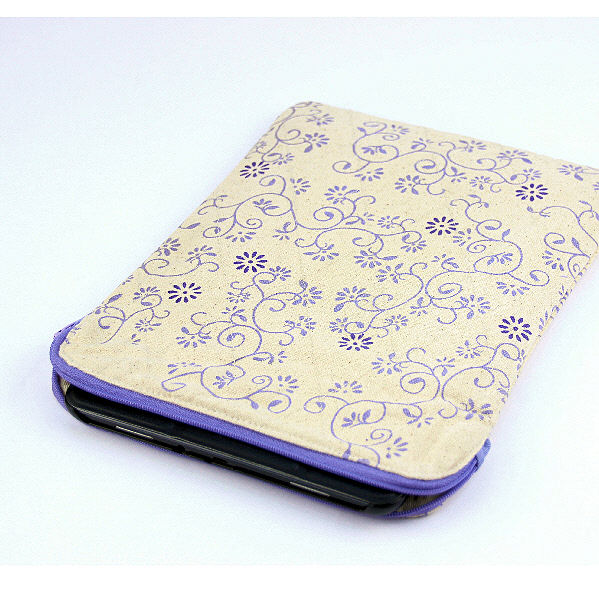 CANVAS TABLETTASCHE KUSUM LILA, mit Zip, Bio Baumwolle